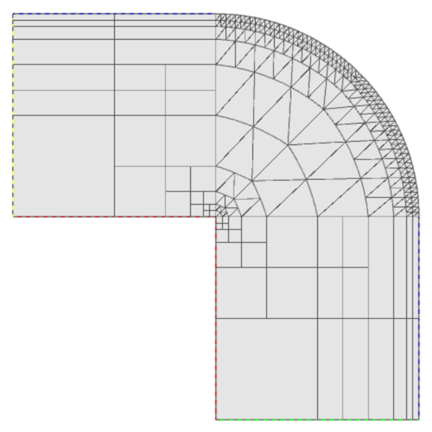 Consider a simple L-shaped domain consisting of two materials (Copper and Aluminum), that is initially split into four elements - two quadrilaterals and two curvilinear triangles: