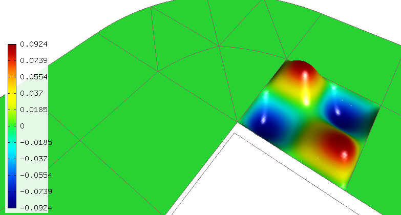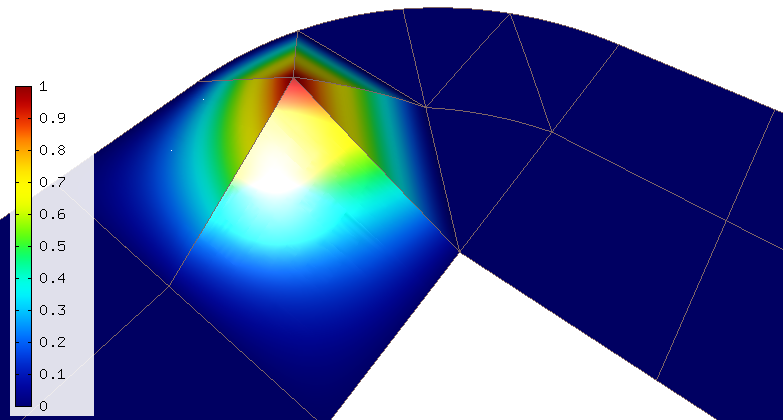 Last there are bubble functions that are local to element interiors. The following figure shows an example of a bicubic bubble function in a quadrilateral element: