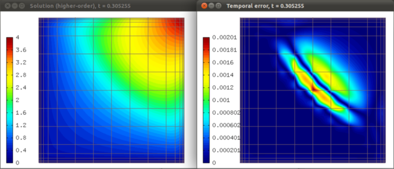 When the Butcher’s table is an embedded one, the method rk_time_step_newton() provides an error estimate on the next time level (difference of the two approximations with different orders of accuracy):