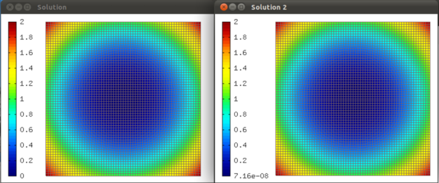The purpose of this example is to show how to use Trilinos for linear PDE problems where NOX only does one nonlinear iteration. Thus this is a good example to test various preconditioners for the linear problem. First we use the Newton’s method in Hermes (assembling via the DiscreteProblem class and matrix problem solution via UMFpack). Second, assembling is done using the DiscreteProblem class in Hermes and the discrete problem is solved using the Trilinos NOX solver (using Newton’s method or JFNK, with or without preconditioning).