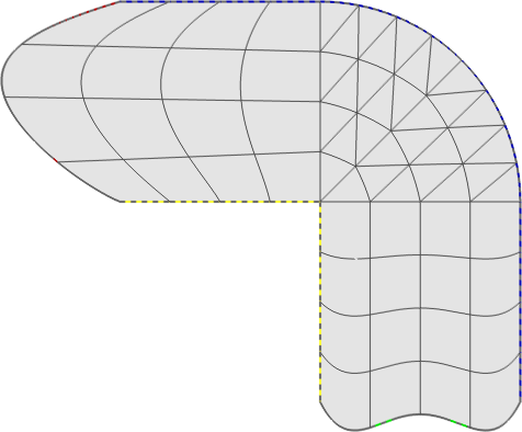 This example shows how to use full-featured NURBS to define curved boundary edges. Recall that simplified format is available for circular arcs, as was shown in example 03-poisson.