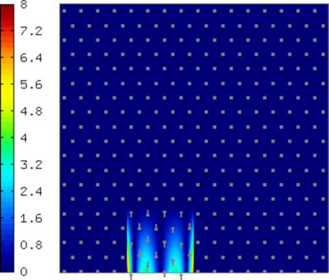 The space H(div) in 2D is very similar in nature to the space H(curl), except its functions behave like (vector-valued) divergences of H1 functions. Finite element basis functions in the space H(div) are discontinuous across element interfaces but their normal components are continuous. The following code shows how to set up an H(div) space and visualize its basis functions: